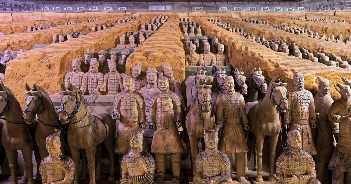 Discovered in 1974, the Terracotta Army consists of thousands of life-sized warriors, horses, and chariots buried alongside China's first emperor, Qin Shi Huang. This vast funerary art project reflects the emperor’s vision of immortality and absolute control, even in the afterlife. The individualized features of each soldier suggest a sophisticated understanding of realism and artistic craftsmanship. Politically, the army symbolizes the unification of China under Qin rule, as his policies laid the foundation for centralized governance. Culturally, the army’s preservation has provided historians with invaluable insights into ancient Chinese warfare, society, and artistry. Its discovery significantly reshaped global perceptions of early Chinese civilization.