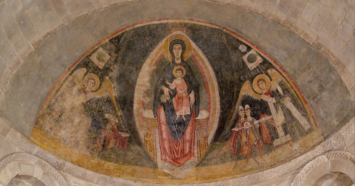 The Virgin and Child in Majesty and the Adoration of the Magi. Attributed to the Master of Pedret (Spanish, Catalonia, 12th century). Ca. 1100. Lleida, Catalonia, Spain. Fresco transferred to canvas. The Metropolitan Museum of Art, New York, The Cloisters Collection, 1950.