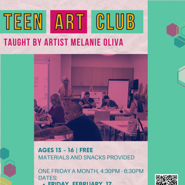 Teen Art Club offers monthly workshops for teenagers to explore artistic mediums and creative expression with artist and educator Melanie Oliva. Every month, students will learn new art skills following in the styles of a new artist. This program encourages creative problem-solving using a wide range of materials, exploring styles and techniques inspired by contemporary artists. Advanced registration is suggested, seating is limited to 20 participants.