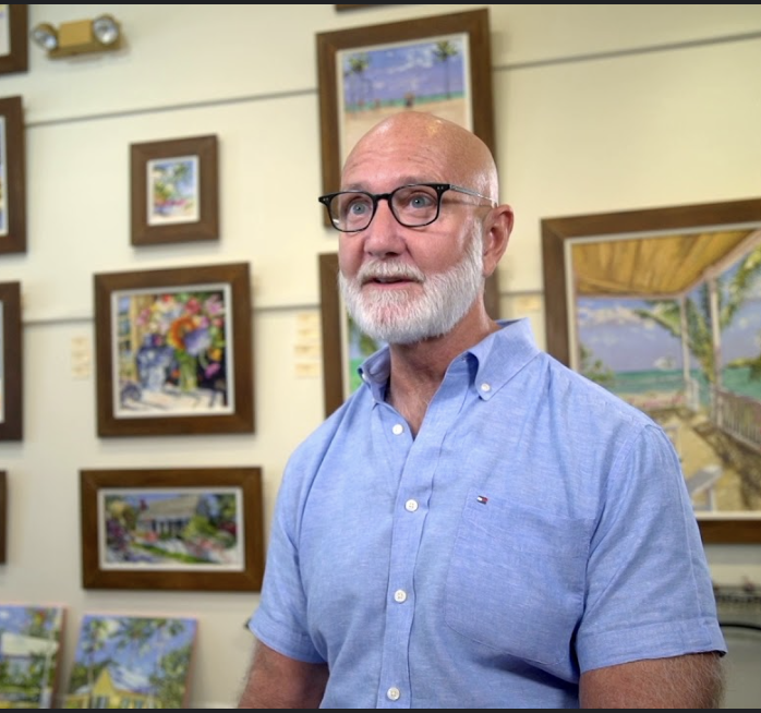 His work is prominently displayed in local galleries, where it has become a defining element of Key West’s artistic identity. Collectors and art lovers alike seek out his pieces, drawn to the way he conveys the essence of island life with a sense of warmth and movement. Beyond his paintings, Vey remains an active presence in the Key West arts community, contributing to the city’s creative legacy and inspiring future generations of artists who call the island home.