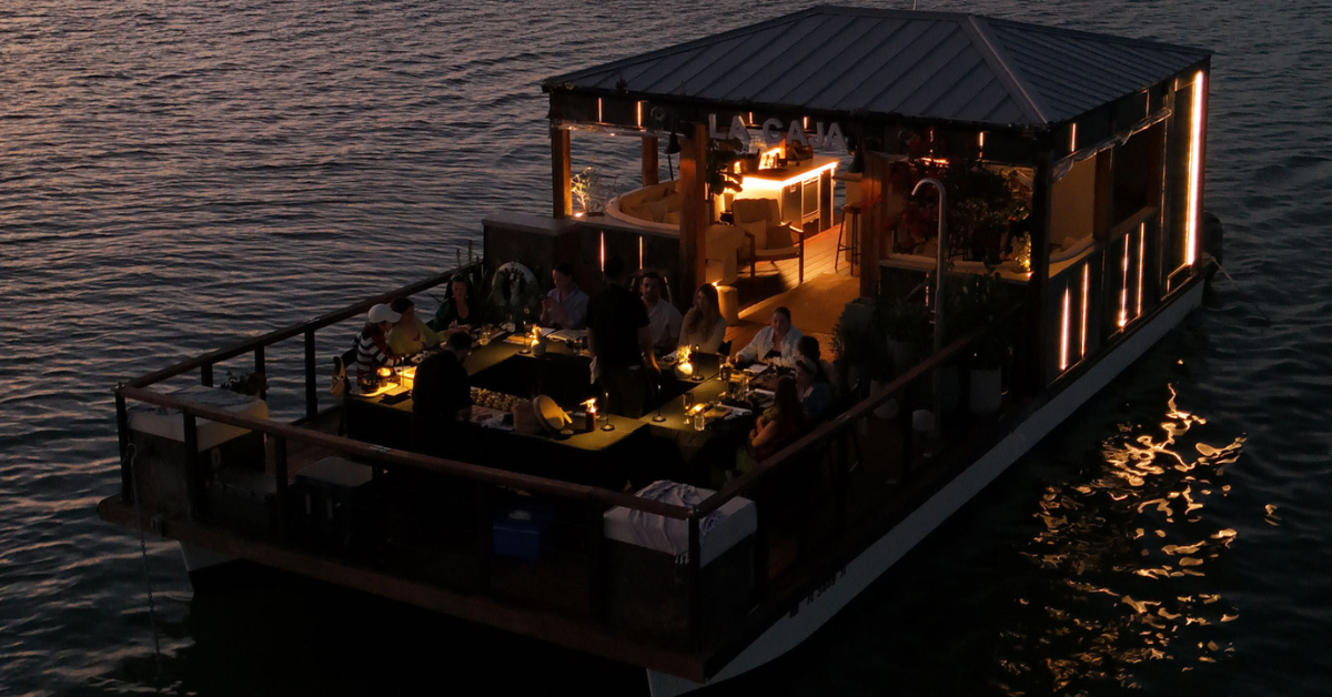 Location: Aboard La Caja barge on Biscayne Bay (private dock), Miami Beach