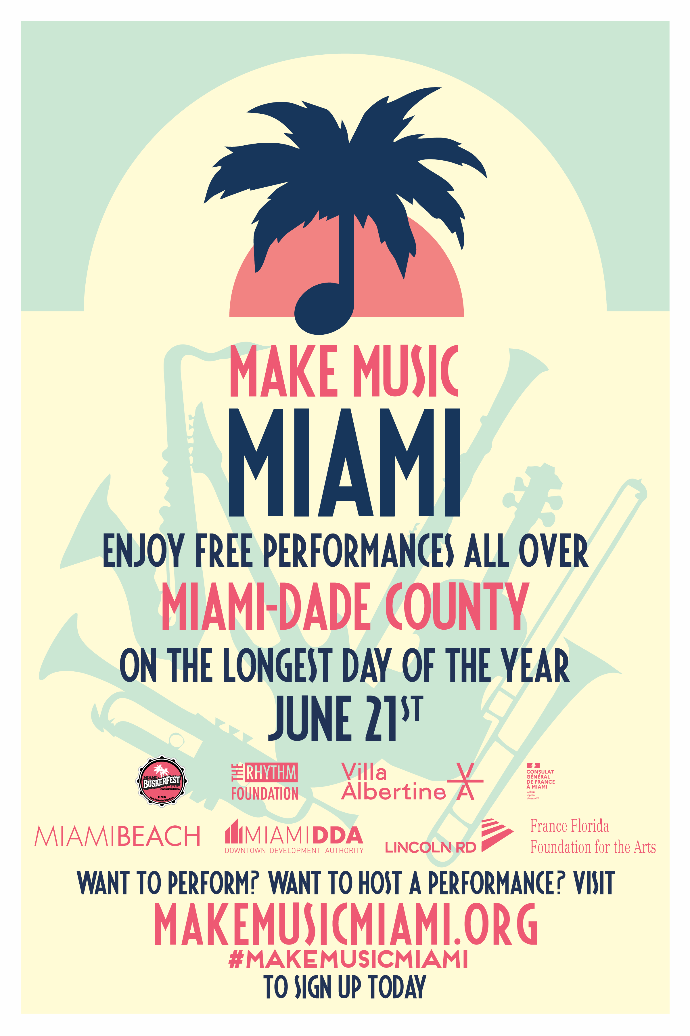Launched in France in 1982 as the Fête de la Musique, Make Music Day is presented in the U.S. by The NAMM Foundation and coordinated by the nonprofit Make Music Alliance. This year Make Music Miami, a collaborative effort of Buskerfest Miami, the Rhythm Foundation, the Cultural Services of the French Embassy and Villa Albertine, continues to expand on previous iterations to provide every Miami-Dade County resident with free music on June 21. Highlights include the return of the Morning Commute with legendary DJ Le Spam, a roving “stage” and recreational vehicle known as “The Toad” and over 60 combined performances between Lincoln Road, Downtown Miami and along The Underline. A selection of programming will be streamed throughout the day and available on MakeMusicMiami.org.