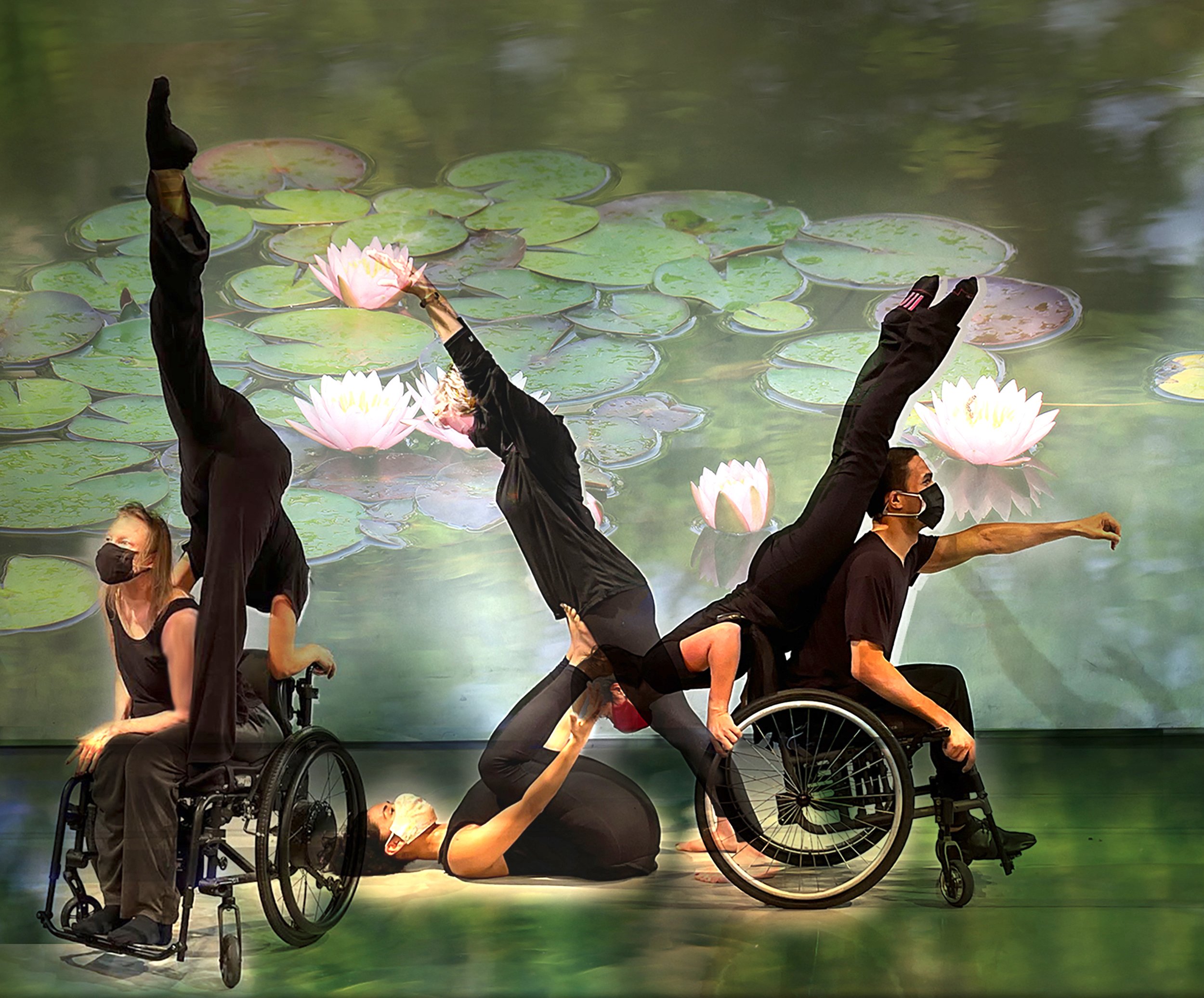 “One of the most difficult things in dance practice or performance is to get wheelchairs to move in unison. The chairs have a mind of their own,” she says. “One has a battery that reacts this way, one’s wheels stick a little bit. The wheelchairs engage my imagination – from the speed of the chairs to their unique features to how fast they go.”