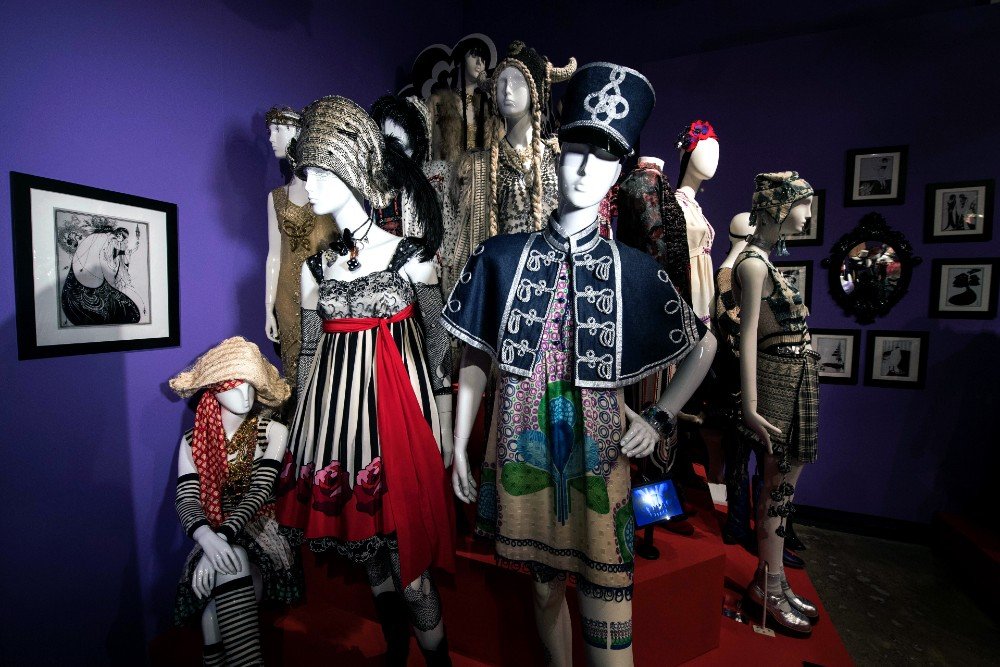 Since her first catwalk show in 1991, Anna Sui has become known for creating fabulously original clothing inspired by intensive research into vintage fashion and popular culture. The exhibition ranges from early looks – such as the exuberant Carnaby Street schoolgirl outfits worn by supermodels Linda Evangelista and Naomi Campbell in the first runway show in 1991, to the cowgirl and cheerleader modeled by Gigi and Bella Hadid during the Spring/Summer 2017 Americana-themed collection.